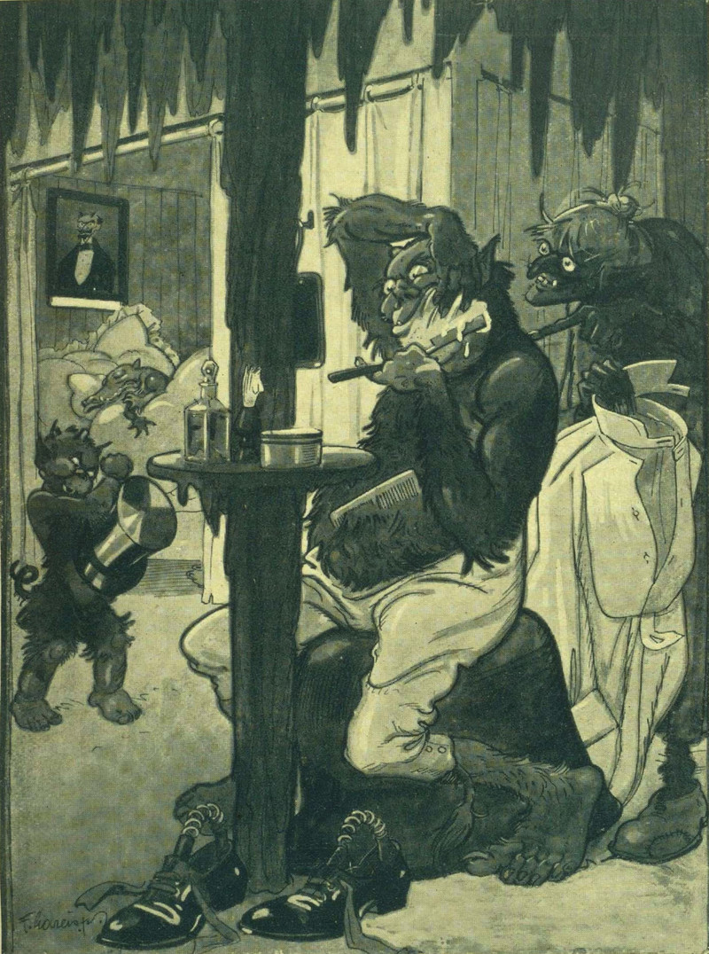 #vintage illustration #demon #devil #illustration #shaving