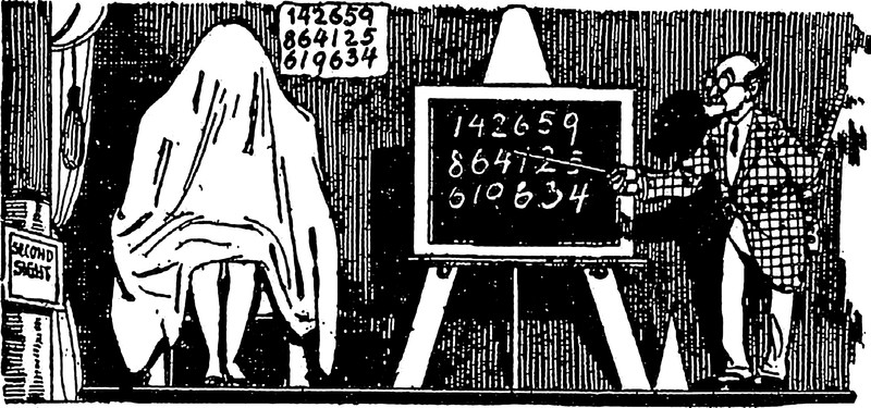 The devil marries a sheet ghost while others walk their pets. From Cincinnati Bible Seminary's 1950 yearbook. See Of Feeding & Caring For Sheet Ghosts.