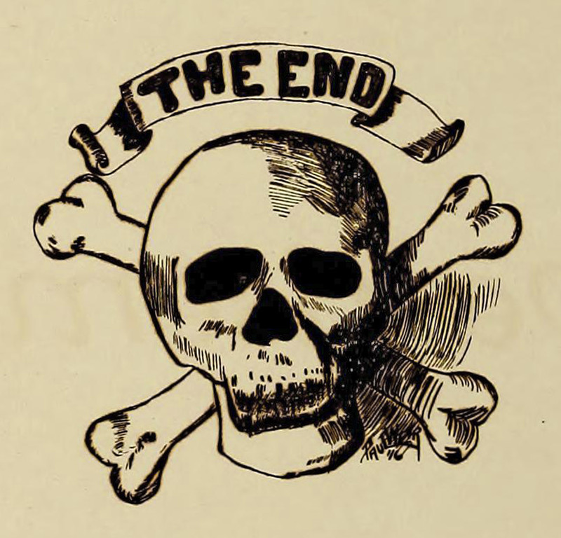 #vintage illustration #skull #skull and crossbones #vintage yearbook #yearbook #the end #illustration