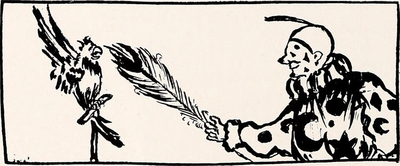 #vintage illustration #parrot #clown #vintage yearbook #feather #yearbook #tickling #illustration #art