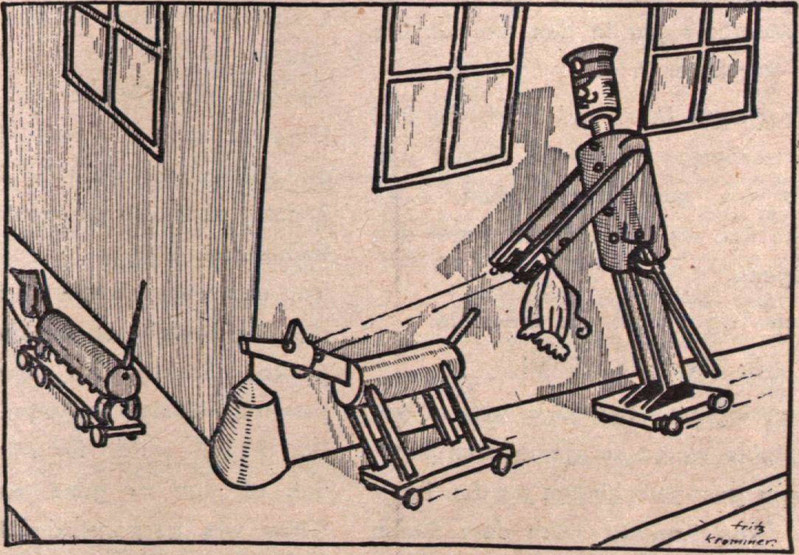 Here's a precursor to the Tin Man of the Wizard of Oz (1900), from Judy, Or The London Serio-Comic Journal (1887).