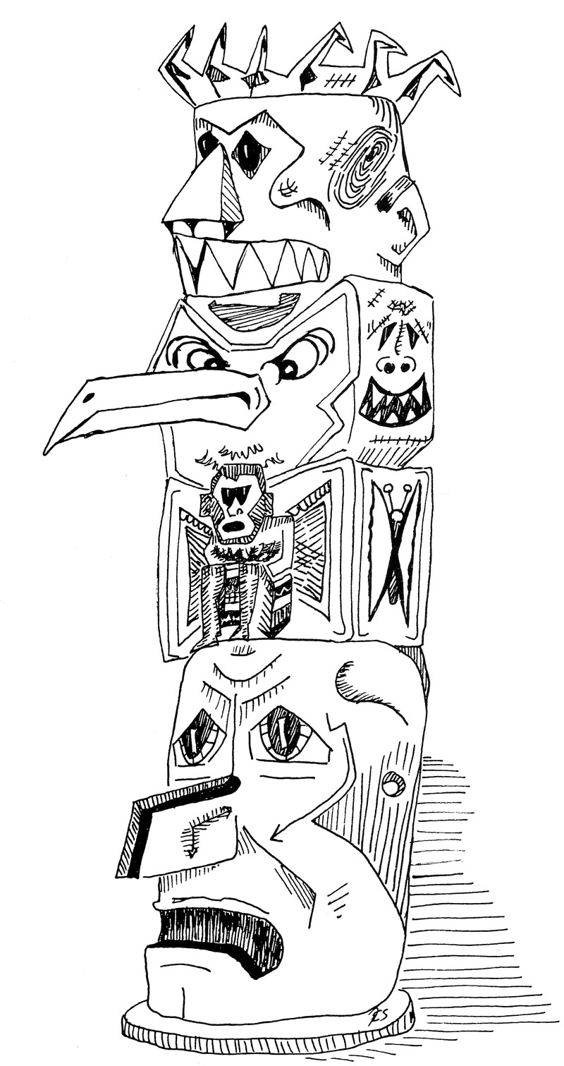 #vintage illustration #illustration #totem pole #totem