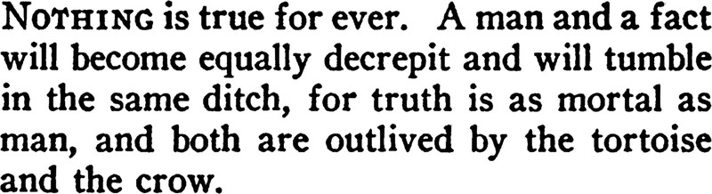 Truth is mortal and will be outlived by the tortoise and the crow. This we learn from James Stephens (author of one of our very favorite books, The Crock of Gold), in Here are Ladies, 1913