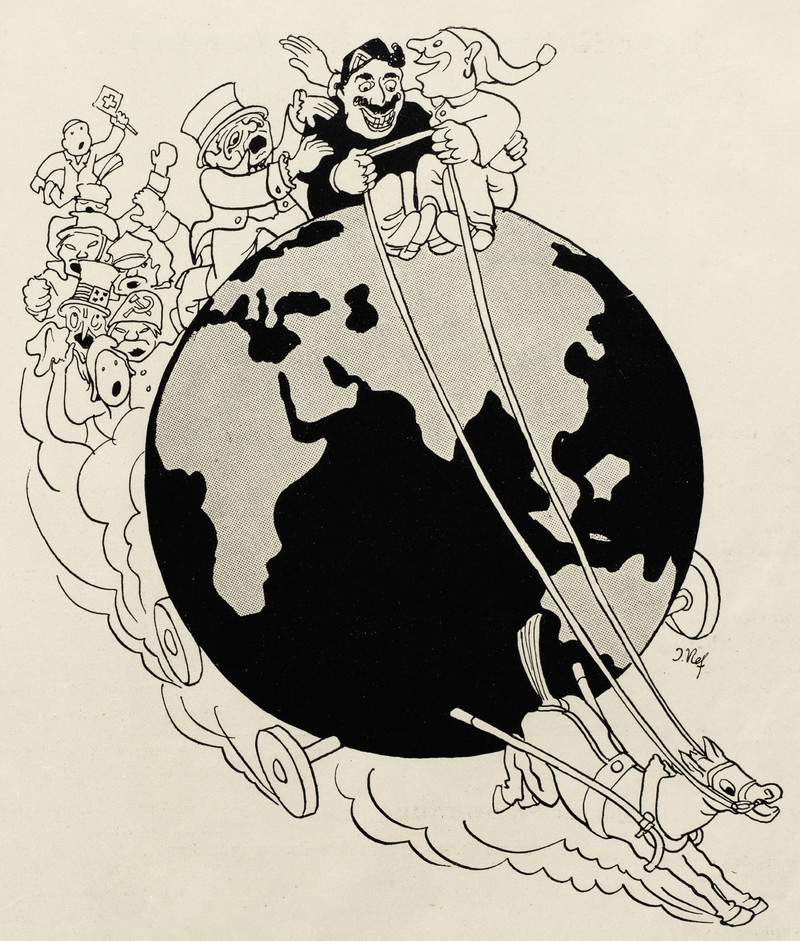 Why the earth wobbles.  From Nebelspalter, 1936.