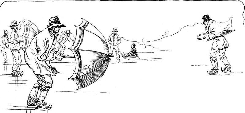 #vintage illustration #umbrella #ice skating #illustration #winter sports