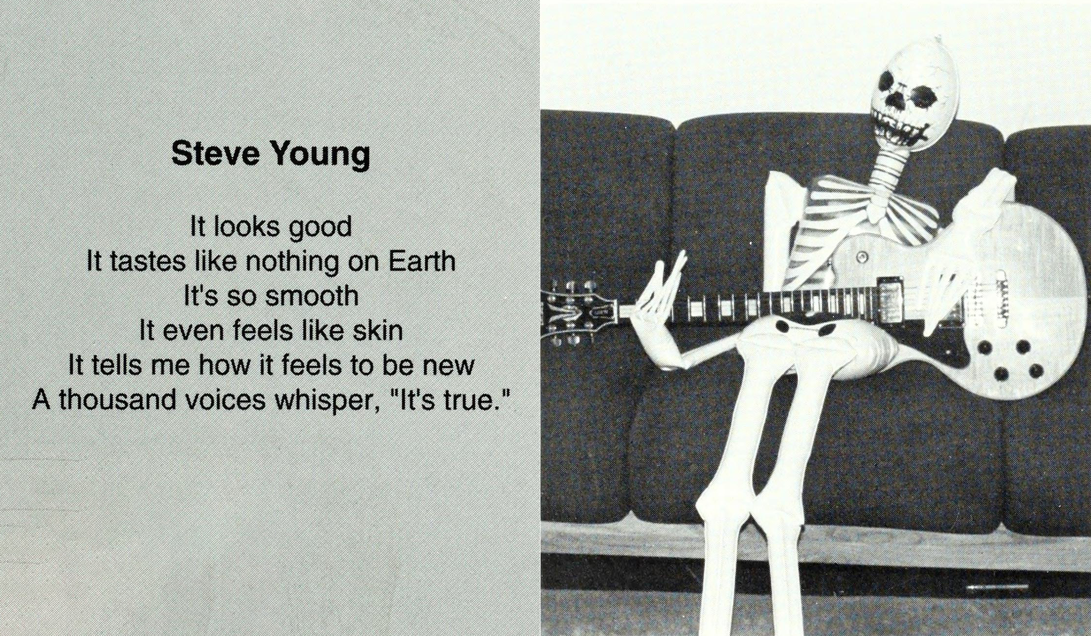 His official yearbook portrait, a skeleton guitarist quoting The Cure.  From Emerson College's 1992 yearbook.