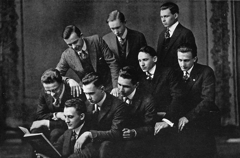 Here's how nine can read a single book.  From Armour Institute of Technology's 1918 yearbook.