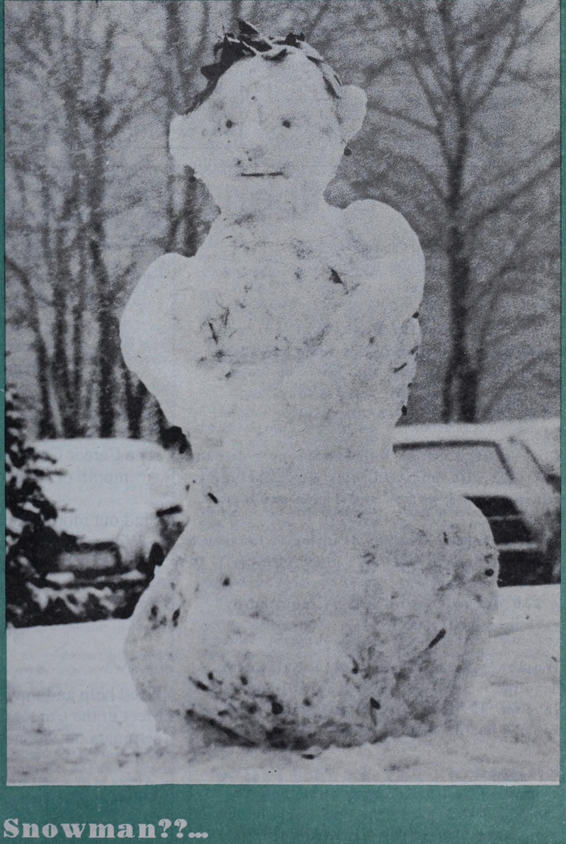 The caption questions whether or not this is a snowman, but we have solved this quarter-century mystery. It is a snowman! From the Medium II newspaper (Mississauga), 1993.