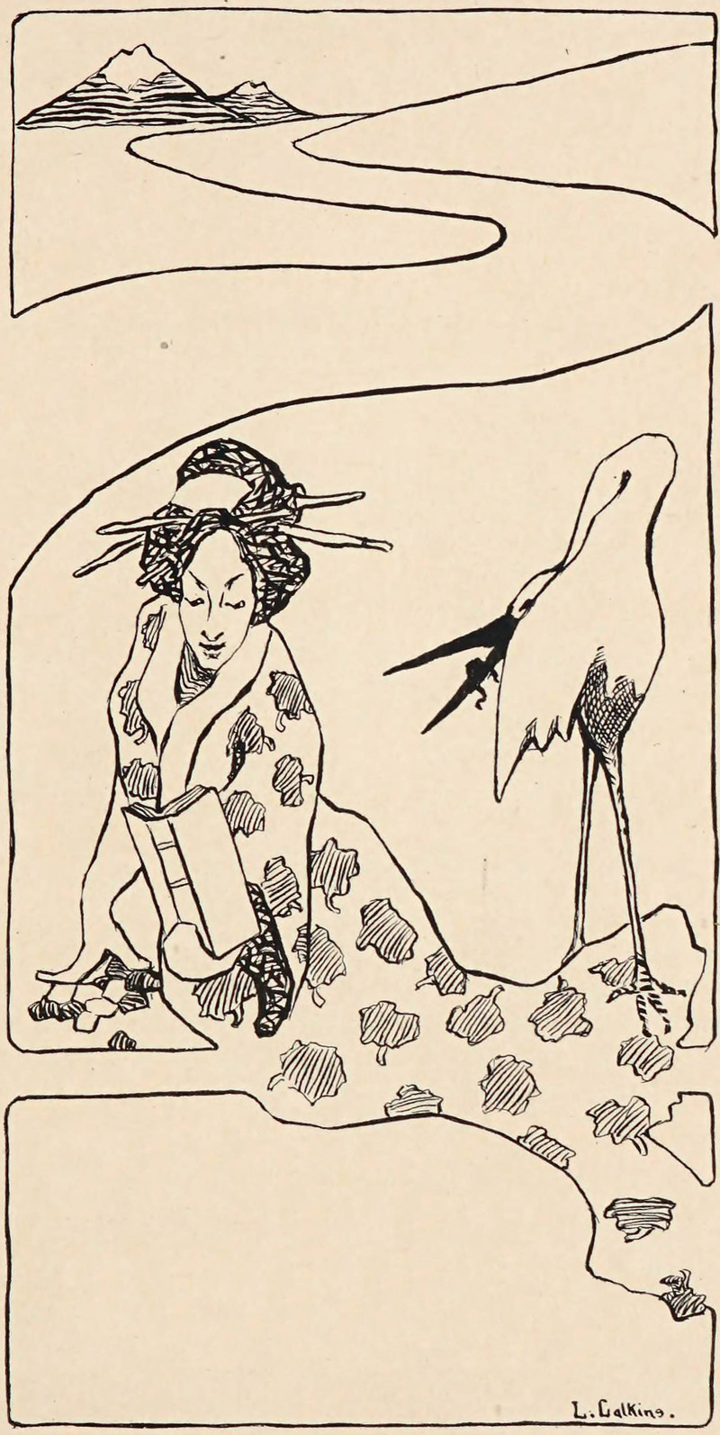 #vintage illustration #japanese #crane #vintage yearbook #yearbook #1900s #illustration