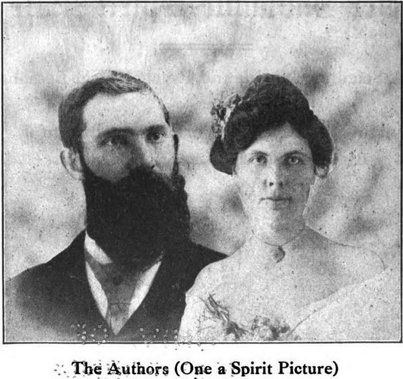 "The authors (one a spirit picture.)"  From Her Invisible Spirit Mate by Mrs. C. W. Glass, 1917.  See The Ghost in the [Scanning] Machine.
