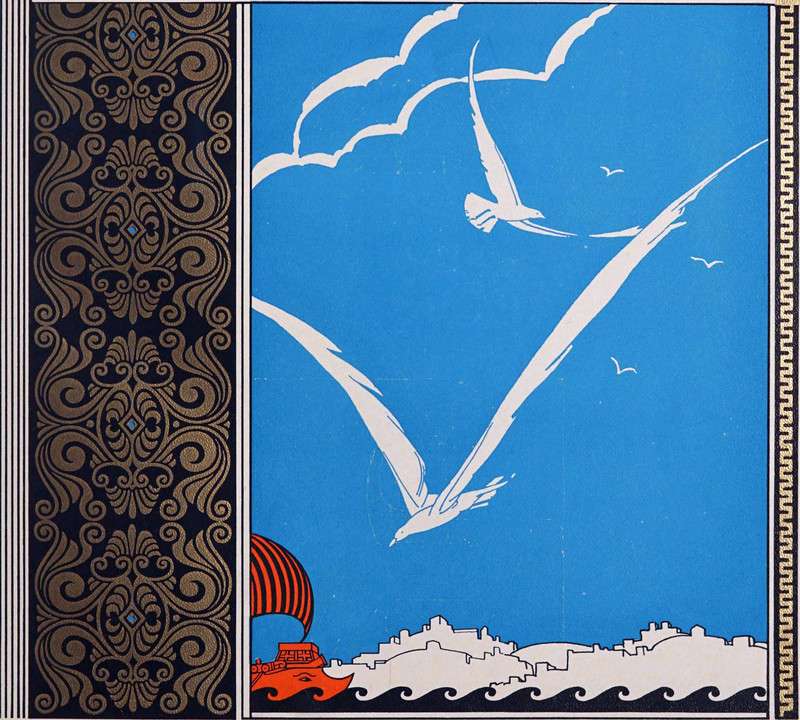 #vintage illustration #ship #vintage yearbook #greece #yearbook #bird #1930s #seagull #illustration