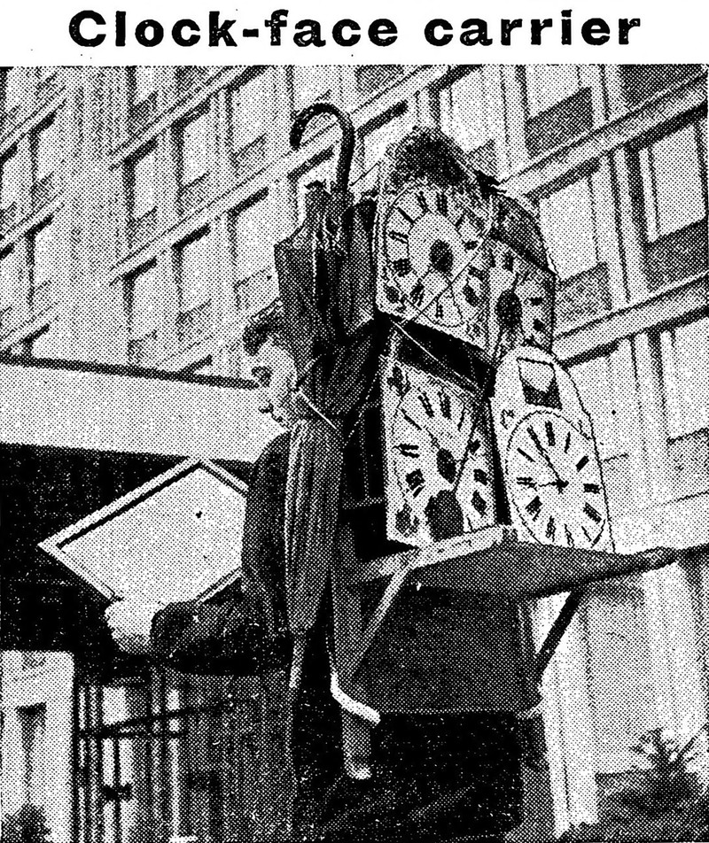 "Clock-face carrier."  From The Children's Newspaper1960.