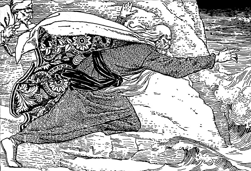 "How the old man disappeared after dinner" (and our own favorite method, too). From The Violet Fairy Book by Andrew Lang, 1906.