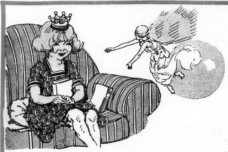 A fairy whispers, "Joy is coming — wait!" From Wee Wisdom, 1928.