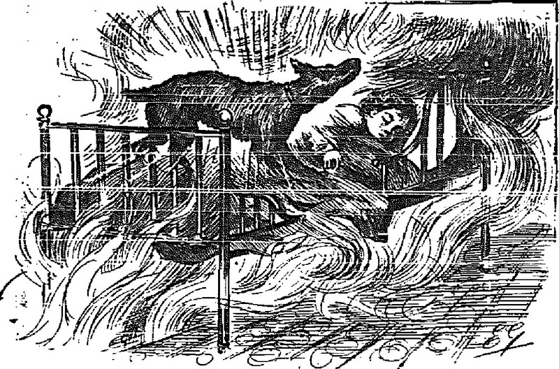 This is Marquette's Monster, a.k.a. Lennipinja or Man-Cat of the Peorias and Illinois, a.k.a. Micibisi of the Northern tribes. The Chippewa name is Michibichi, the spirit panther "god of the waters" or "the manito of the waters and the fishes." The Shawnese clan name is "Manetuwi Msi-pessi," a "'celestial tiger,' i.e. a meteor or shooting star. The manetuwi msi-pessi lives in water only, and is visible not as an animal, but as a shooting star. But the activities of this manito are not confined to the water. He corresponds to the 'Fire Dragon' of other mythologies; and when they see a meteor, the old Miamis say that it is Lennipinja going from one sea to another" ( Indiana and the Indianans by Jacon Piatt Dunn, 1919).