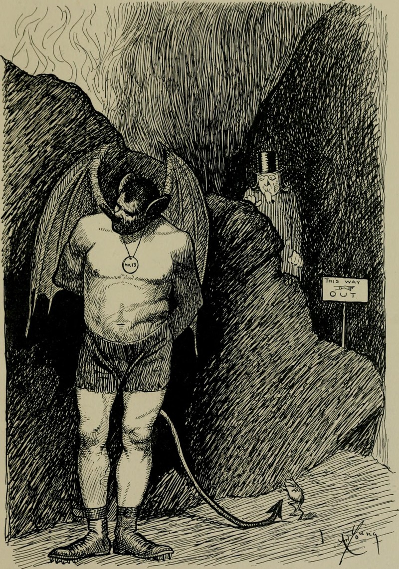 The caption reads, "Please, good Mr. Devil, fetch my mamma, too. It's so nice and warm in your house." An illustration from Skämtbilden Och Dess Historia i Konsten, 1910. Speaking of which, what exactly are a snowball's chances in hell? See A Snowball's Chance in Hell.