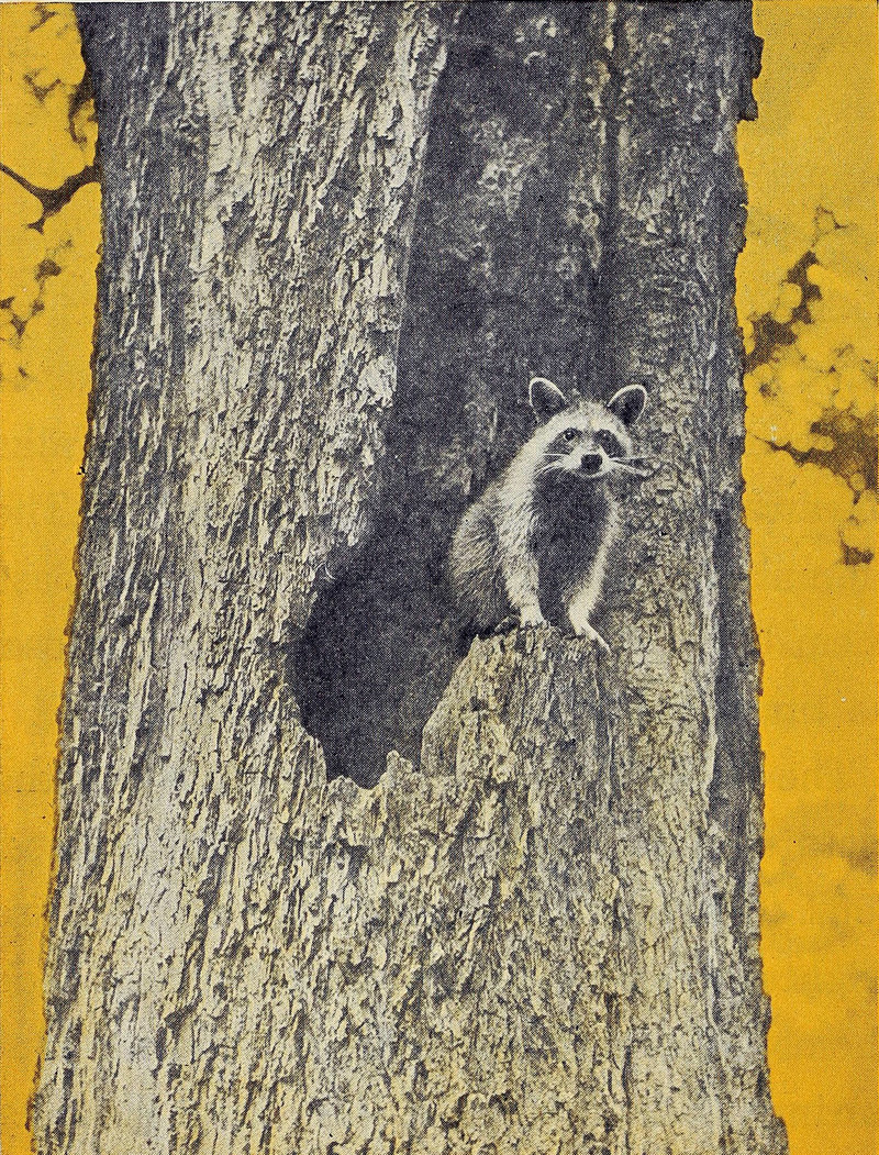 #vintage illustration #vintage photo #1930s #illustration #hollow tree #raccoon #photo