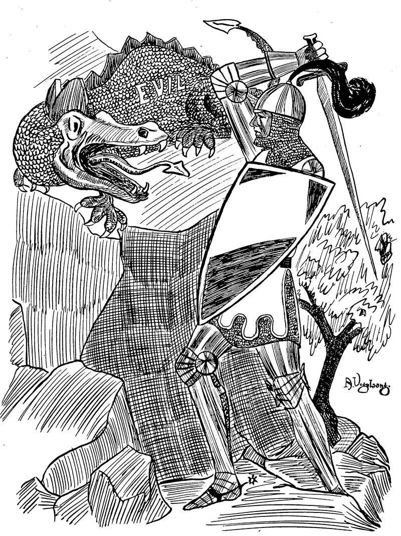 #vintage illustration #dragon #knight #vintage yearbook #yearbook #dragonslayer #illustration