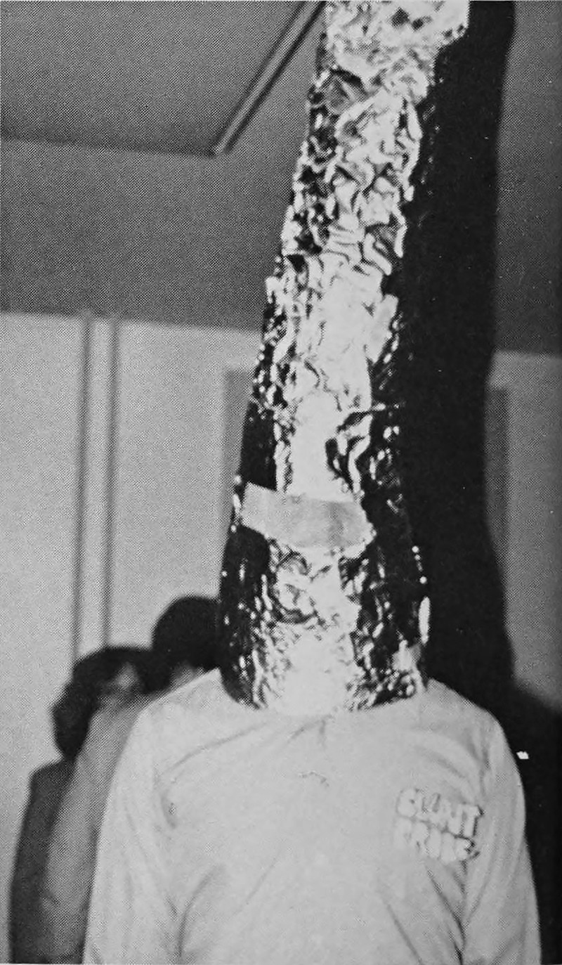 "Blunt probe" tin-foil hat.  From Hershey Medical Center's 1984 yearbook.
