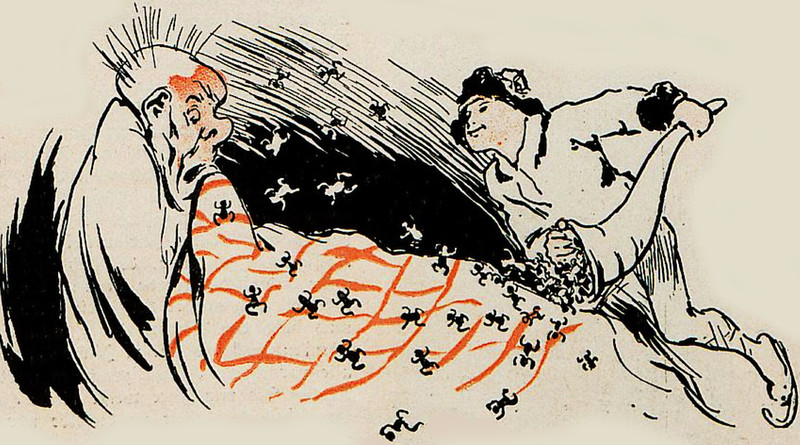 Here's a precursor to the film Naked Lunch, in which Judy Davis injects herself with enough insecticide that her very breath kills bugs. From Life, 1900.