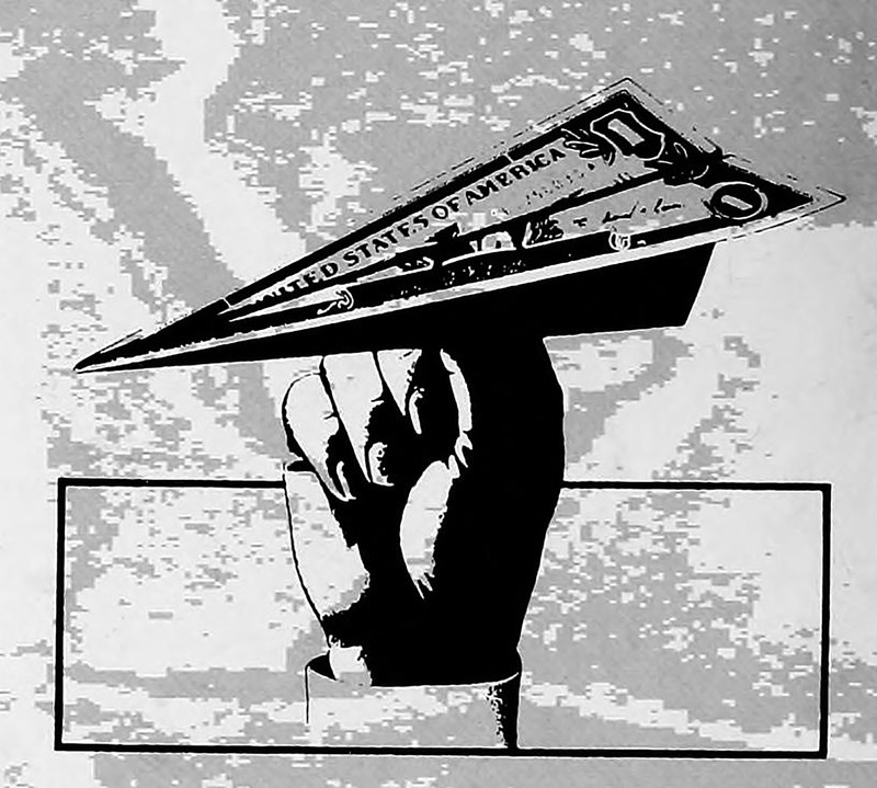 #vintage illustration #money #vintage yearbook #yearbook #hand #illustration #dollar #1990s #paper airplane