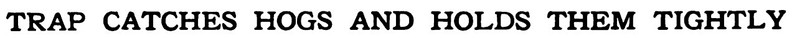 You can upgrade the trap to catch hogs, hold them tightly, and whisper sweet nothings, but it will void the warranty. From Popular Mechanics, 1920.
