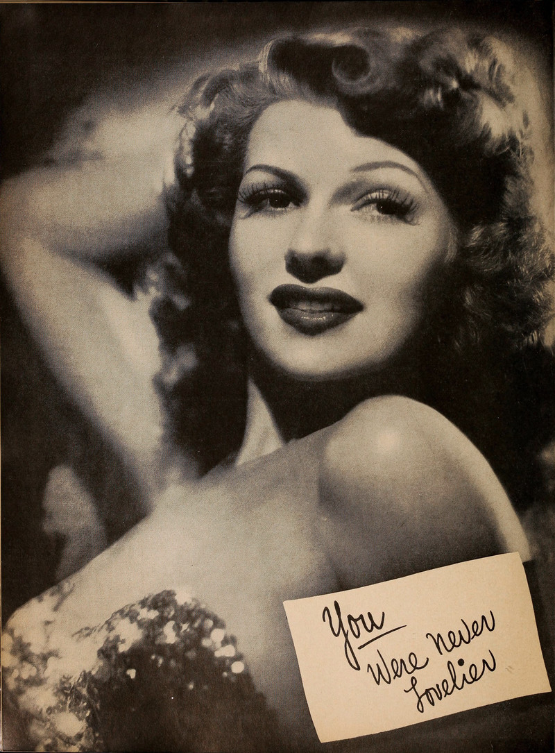 Great news from Rita Hayworth -- "You were never lovelier." From The Film Daily, 1942.