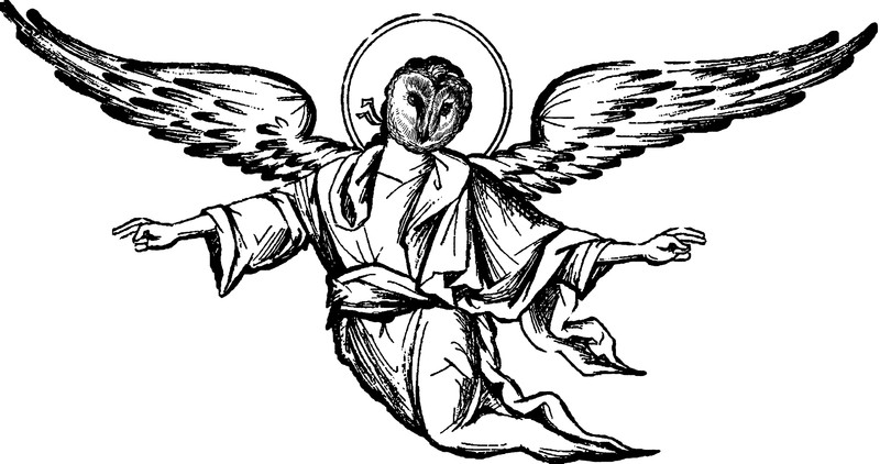 TerminalSigma envisioned "a Byzantine icon of a saint, but with a sooty owl’s head instead of a human head." Our illustration is more of a Byzantine angel than a saint — we can't control how these things turn out.