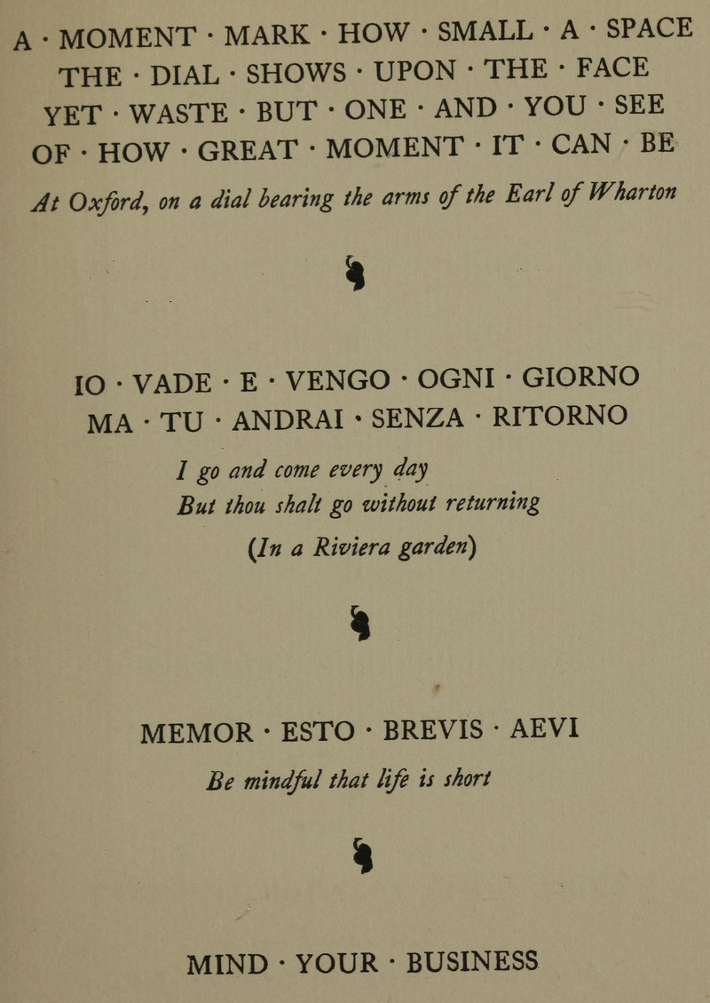From The Book of Old Sundials and their Mottoes by Launcelot Cross, 1922.