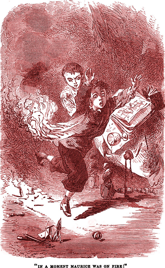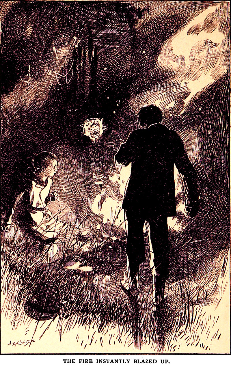 "A tongue of pale blue flame shivered on the truck of the mast," from Ia by Q. [A. T. Quiller-Couch], 1896.