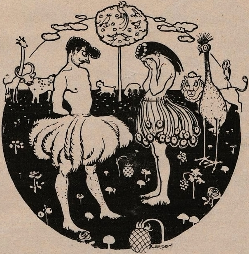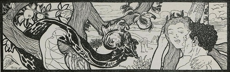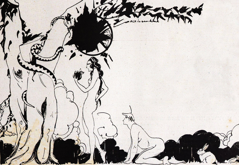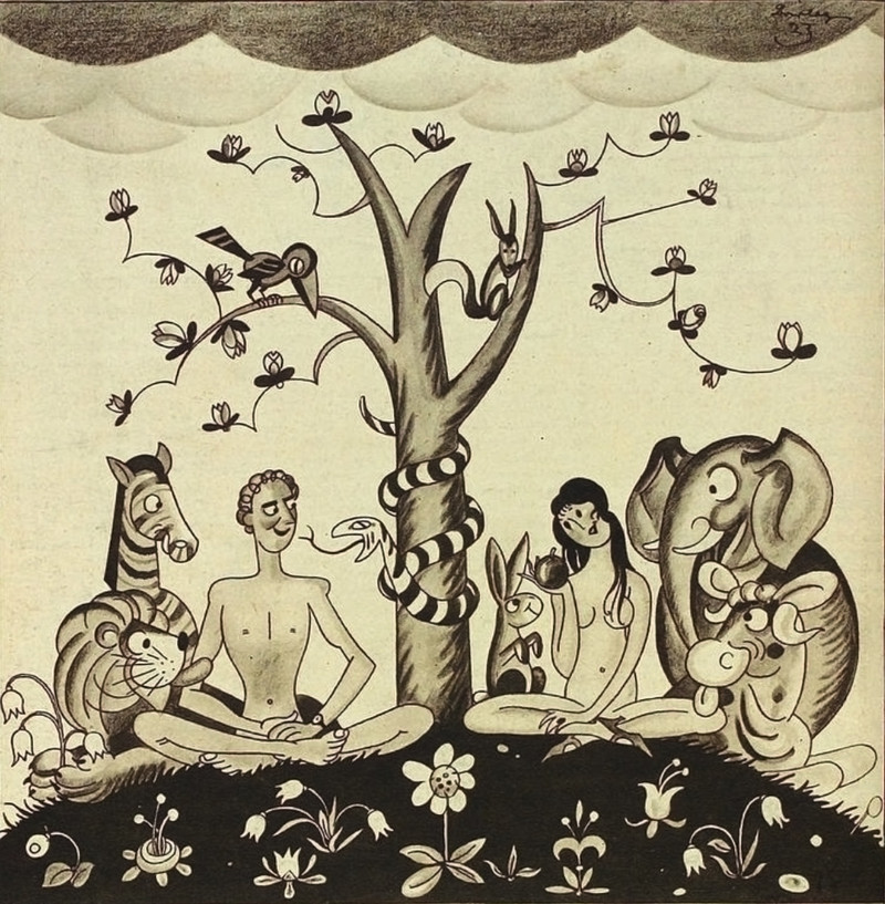 Why won't Adam eat from the apple of the knowledge of good and evil while he's reading? "There is no such thing as a moral or an immoral book. Books are well written or badly written. That is all" (Oscar Wilde, The Picture of Dorian Gray). From Jugend, 1911.