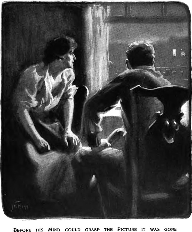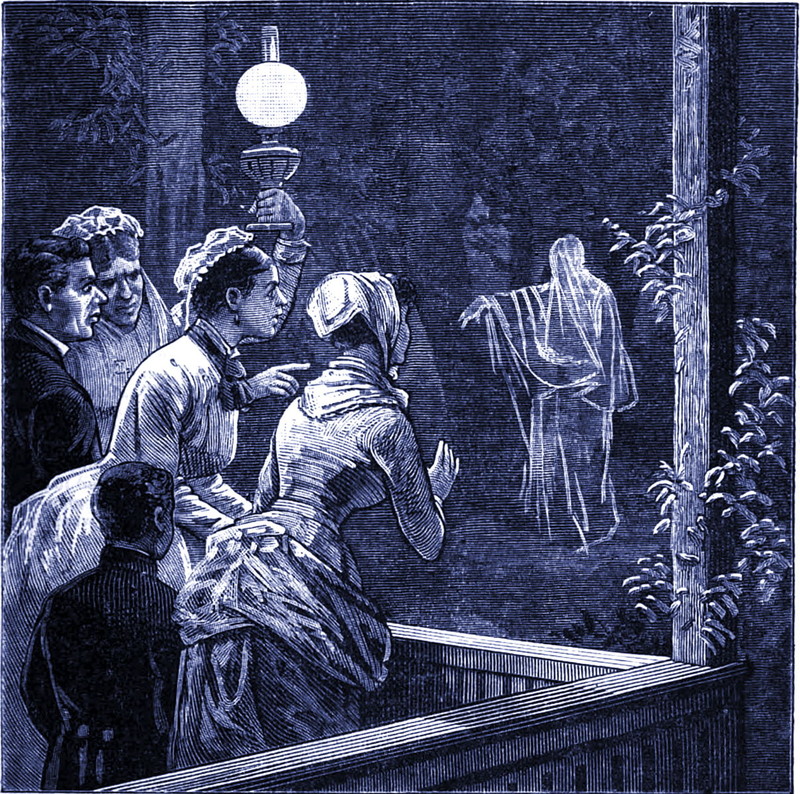 A ghostly illustration from an 1883 issue of Harper's magazine. The caption reads: "The apparition."