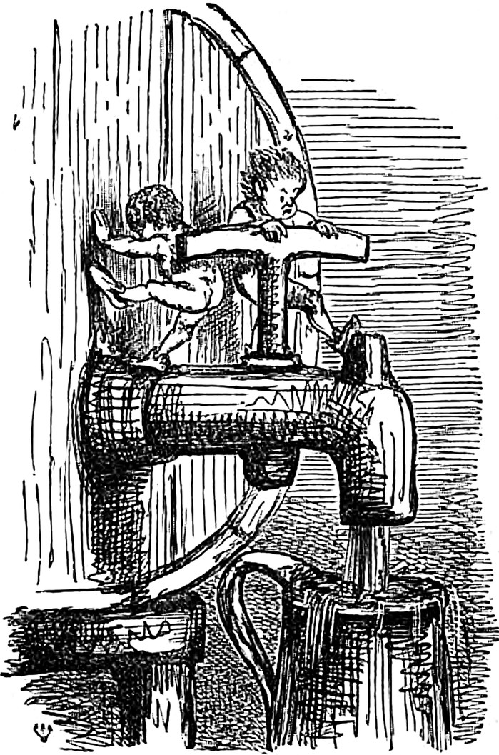 "Oh overflowing cask, you give drink and fill to drunkenness every loving desire. You give joy and illumine all our understanding" (Catherine of Siena, 1347-1380, qtd. in An Anthology of Christian Mysticism by Harvey D. Egan). The keg/cask/hogshead imps appear in Punch, 1860. The spigot fairy appears in Fairies and Folk of Ireland by William Henry Fros t, 1900.
