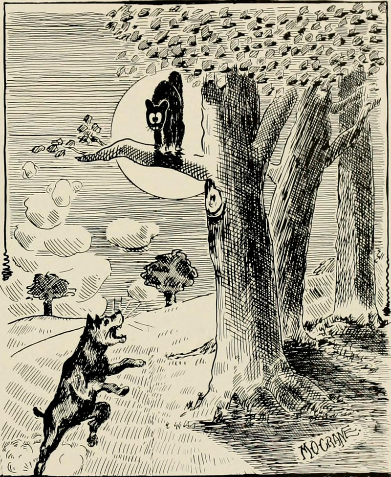#vintage illustration #cat #dog #vintage yearbook #yearbook #up a tree #cat and dog