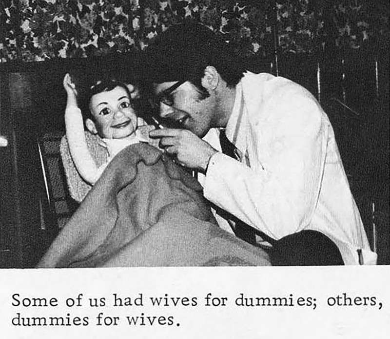 "Some of us had wives for dummies, others, dummies for wives."  From Indiana University School of Medicine's 1974 yearbook.