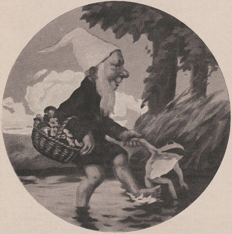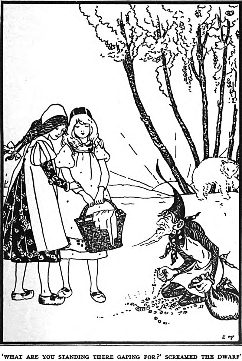 "'What are you standing there gaping for?' screamed the dwarf." From The Fairy Ring by Kate Douglas Wiggin & Nora Archibald Smith, illustrated by Elizabeth MacKinstry, 1916.