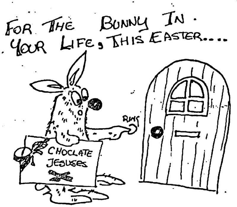 Here's Santa as the Easter bunny. The headline reads, "Eat your Easter candy at Christmas." It's a precursor to holidays colliding in The Nightmare Before Christmas. From The Rotunda newspaper of Longwood College, 1971.