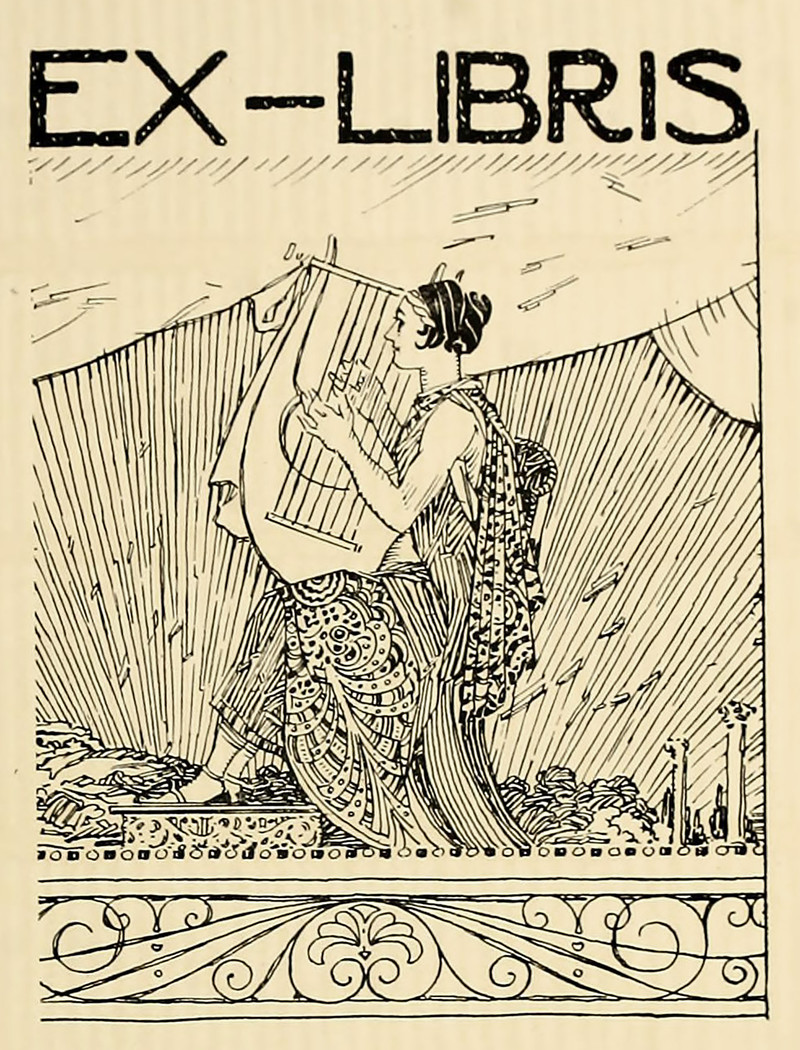 #vintage illustration #vintage yearbook #yearbook #lyre #ex libris #musician #illustration #bookplate