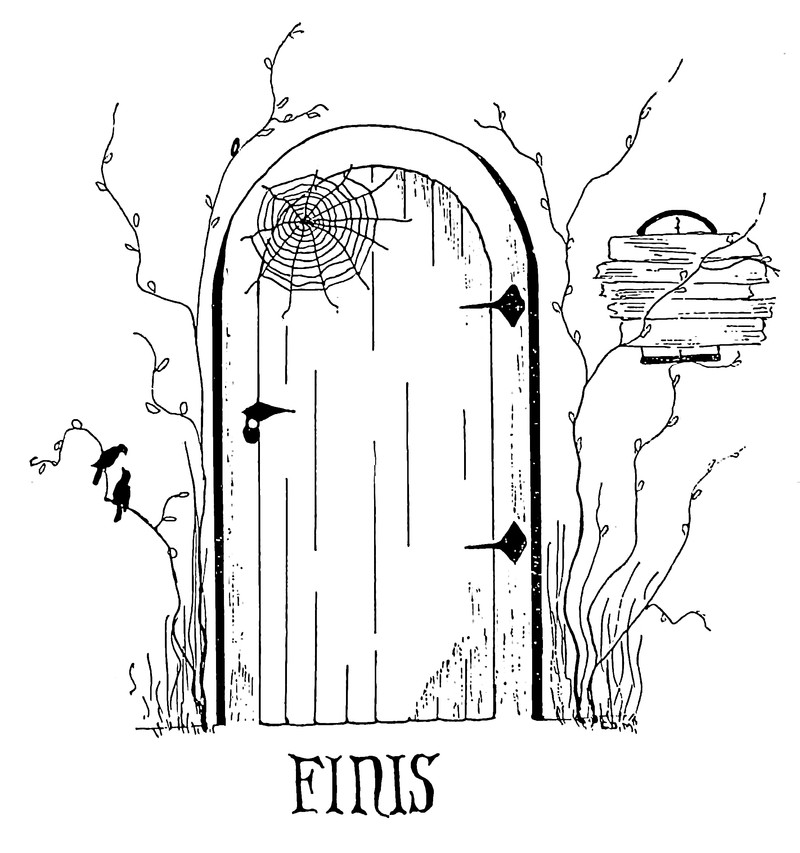 #vintage illustration #finis #vintage yearbook #yearbook #the end #1920s #illustration #door