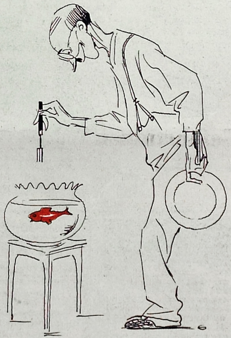#vintage illustration #capital H #fishing #fishbowl #illustration #charlie chaplin