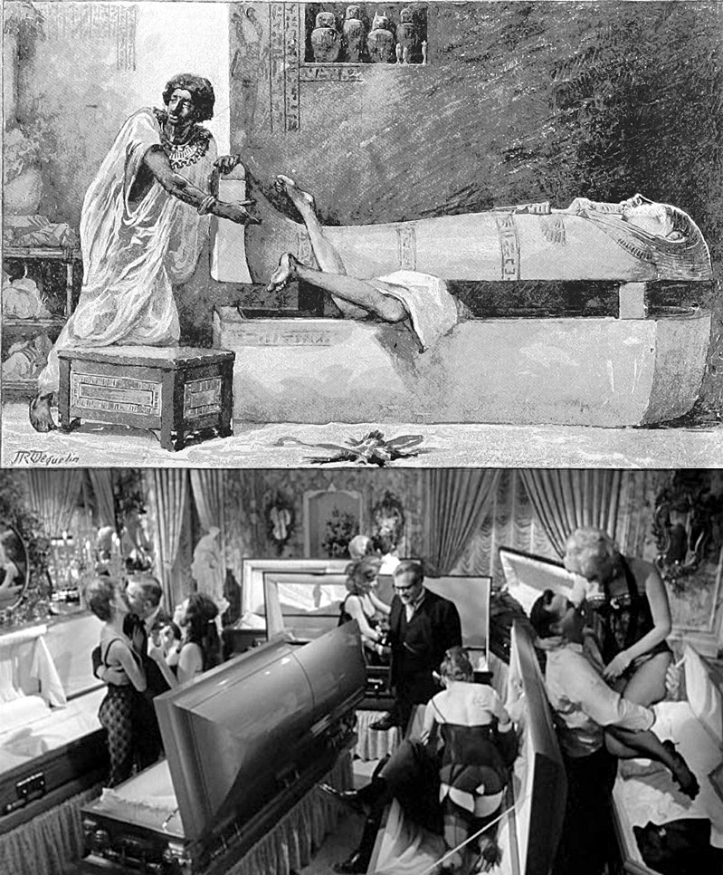 An illustration from Bohemian Paris of To-day by William Chambers Morrow andillustrated by Édouard Cucuel (1899). The caption reads: "In the passage to the death chamber."