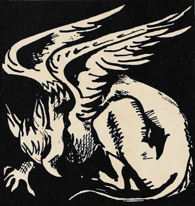 "In the middle of the night, when the griffin was snoring away lustily, Jack reached up and pulled a feather out of his tail." From The Fairy Ring by Kate Douglas Wiggin & Nora Archibald Smith, illustrated by Elizabeth MacKinstry, 1916.