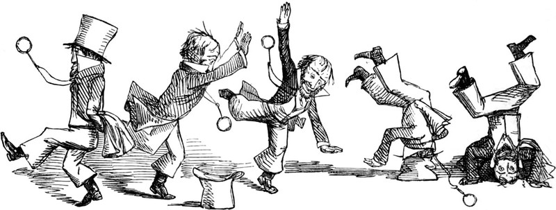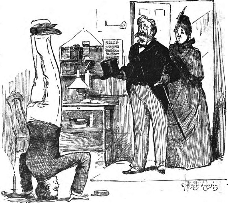 "He did his time on his head, smiling peacefully." From Pick Me Up, 1894.