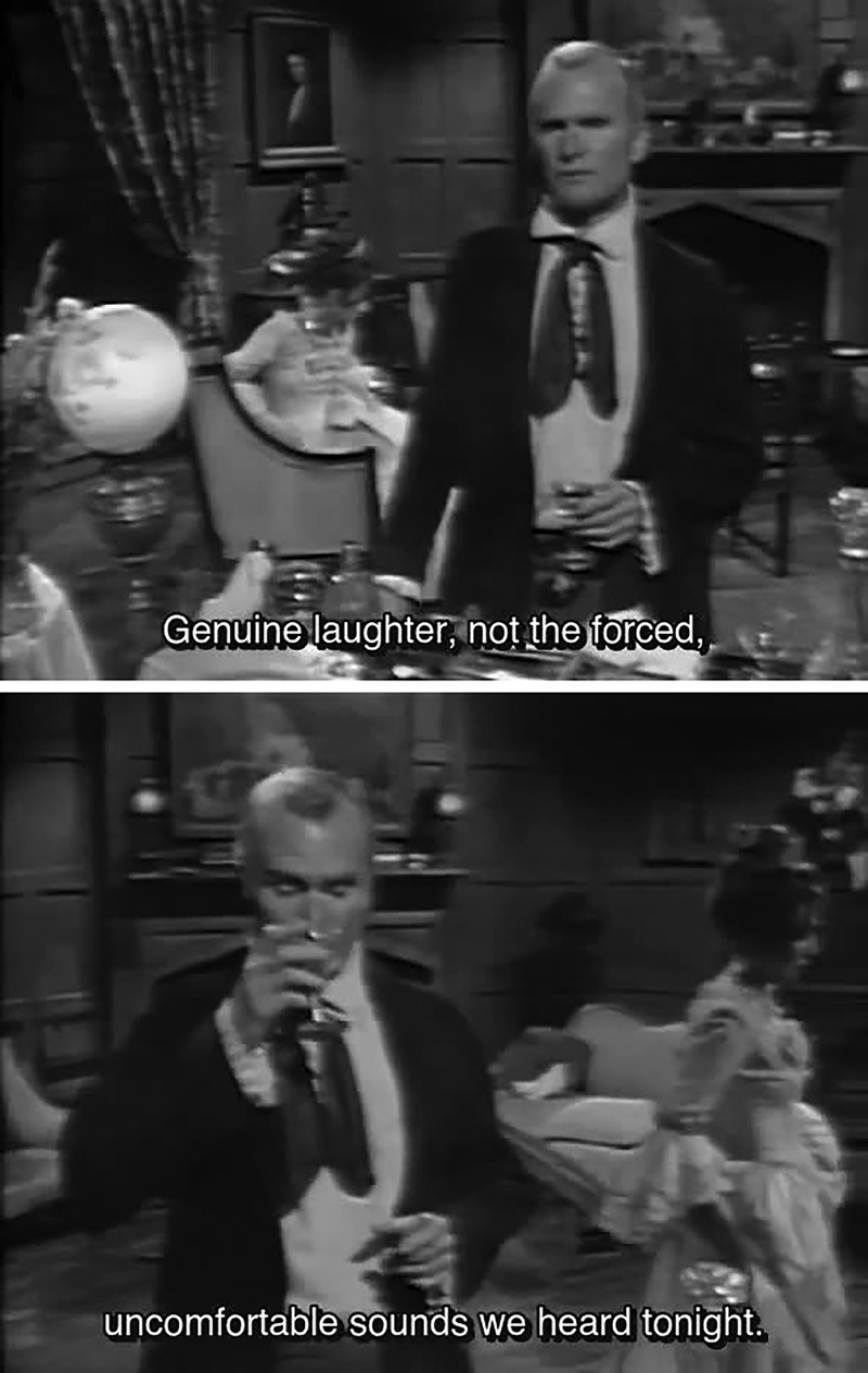 For all its horror, Dark Shadows yet offers moments of laughter. From Dark Shadows episodes 22, 1049, 708, 417, 484, 262, 395. 760, 517, 759, 440, 691, 1025, 653, and 962.