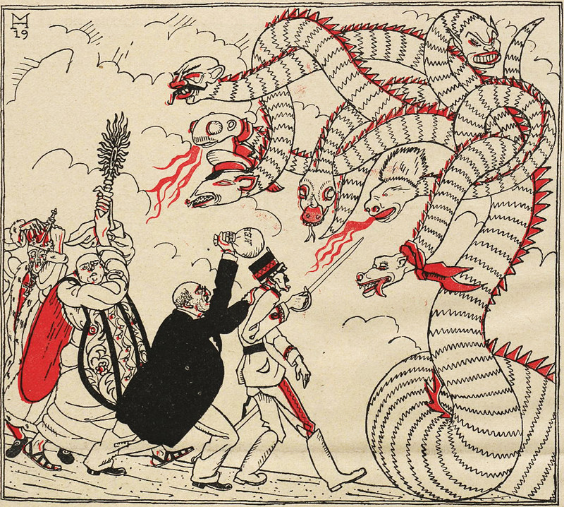 #vintage illustration #political cartoon #monster #hydra #illustration #many headed