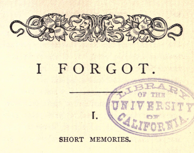 A: " I Forgot" (Mrs. Frederick Field, 1888).