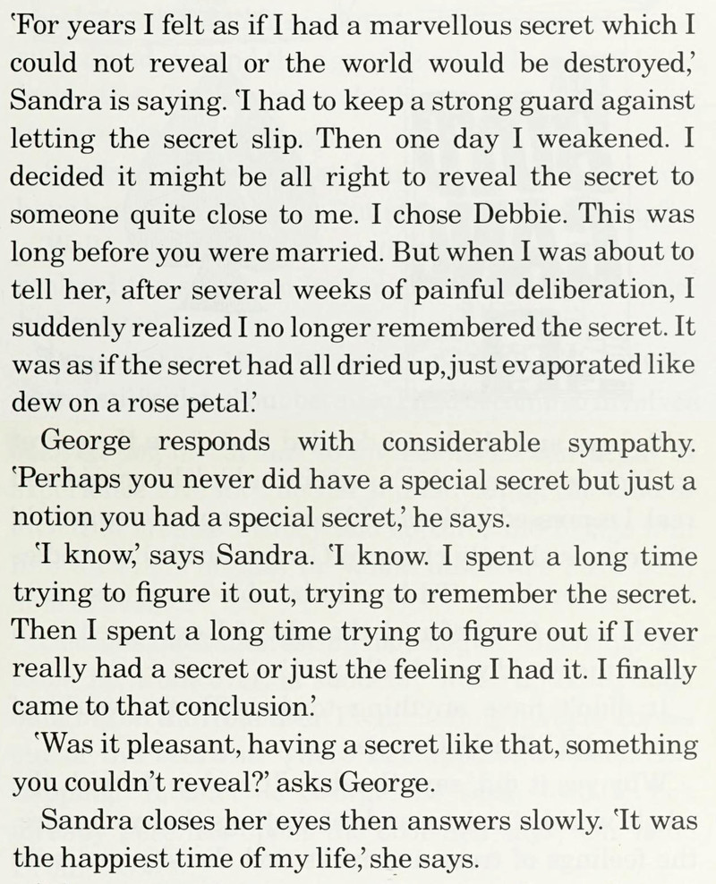 Was it a marvelous secret one has suddenly forgotten, or merely just the notion of a secret? From Animal Spirits by David McFadden.