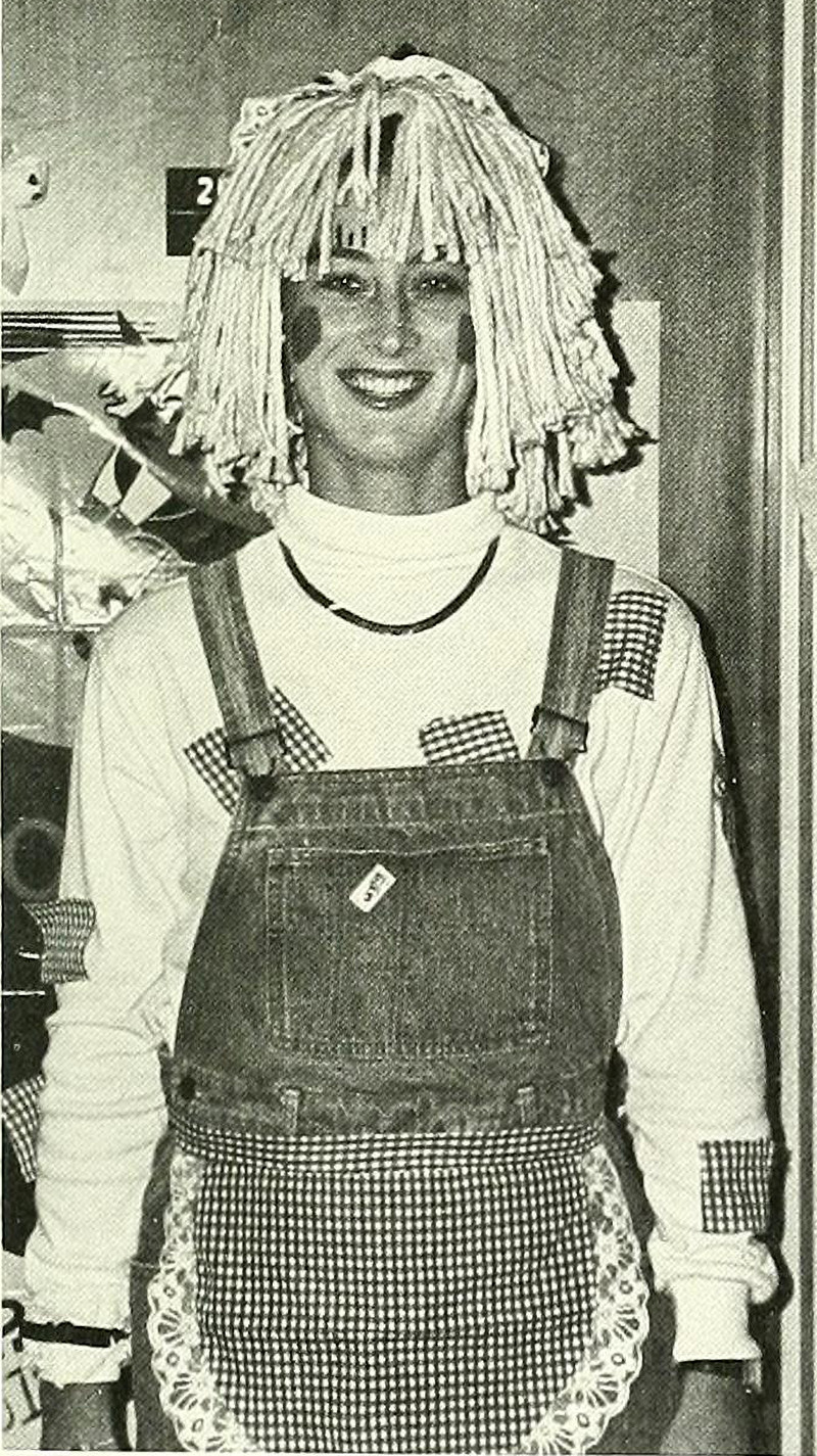Her official yearbook portrait. Looks like she got her mop hair bangs cut for the occasion. As wearers of genuine mop wigs, we confirm the authenticity of this photo. From Anderson's 1989 yearbook.