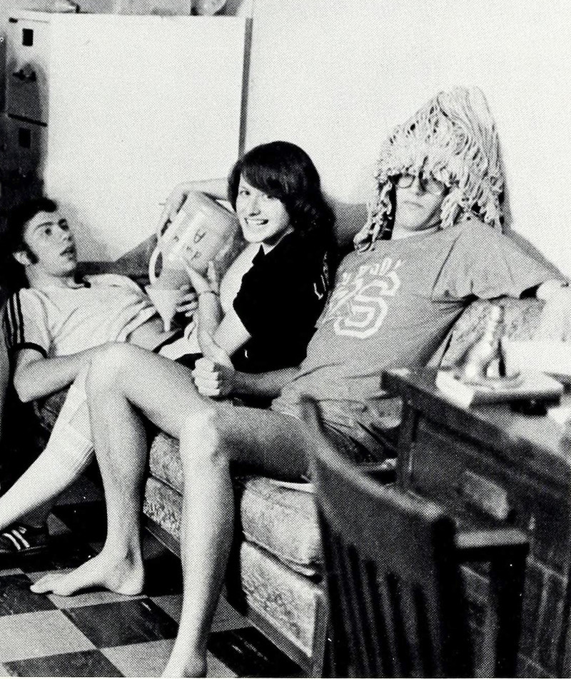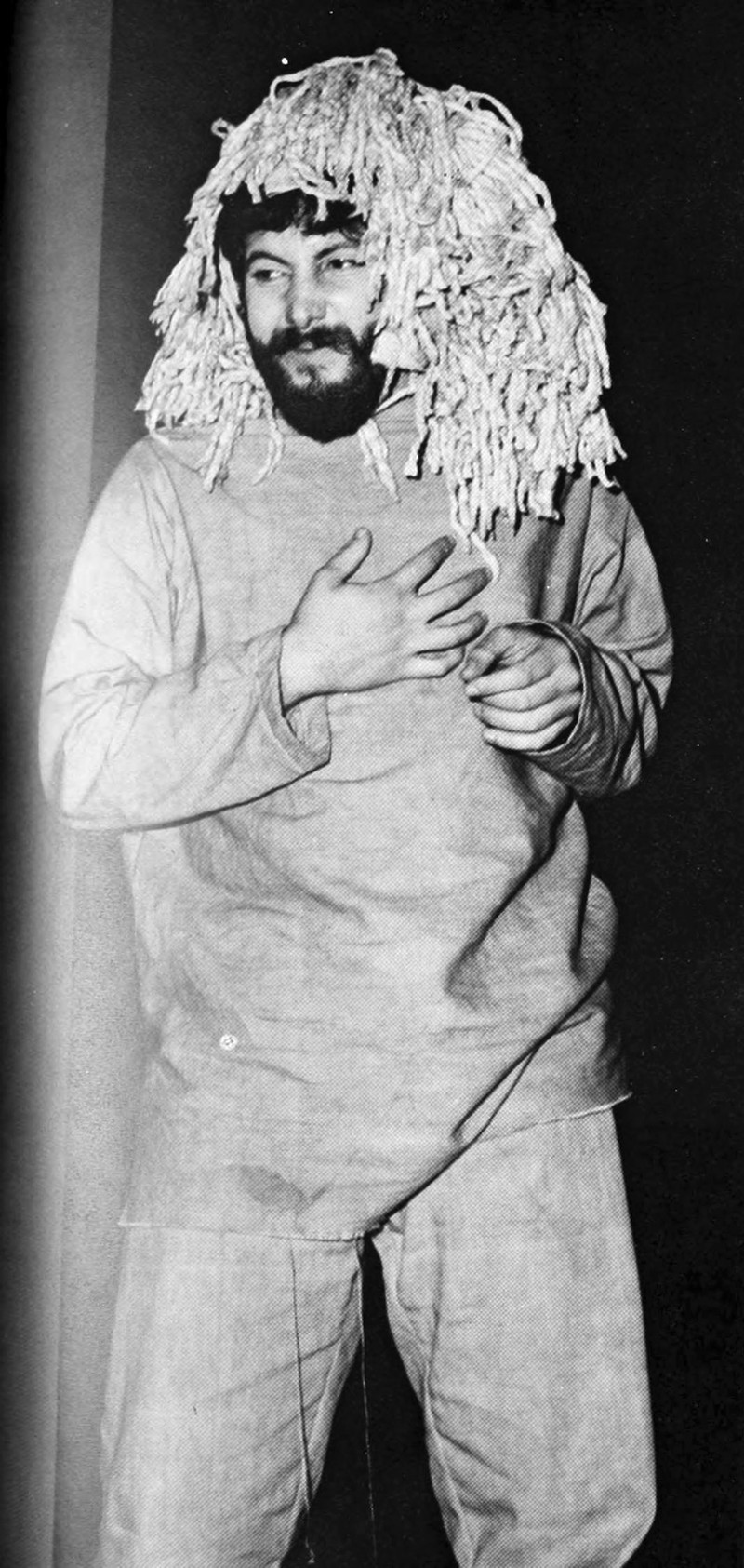 Today's mop wig is from Northeastern's 1970 yearbook. Our very own mop wig has been ranked in the top 5 of mop wig looks through history, but we're too modest to quote that; no one dons a mop wig to put on airs.