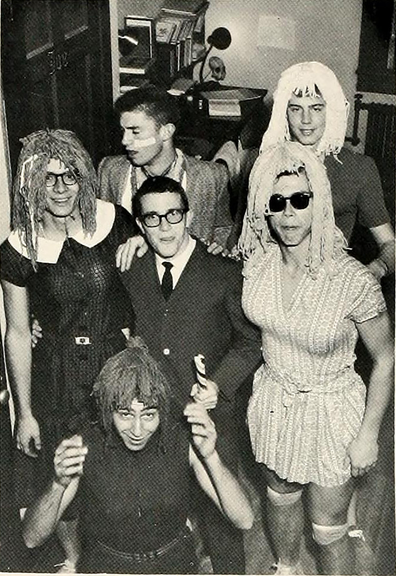 Mop wigs are not restricted to elegant looks. Casual, carefree, even silly moments may be enhanced with mop wigs. From Southern Methodist's 1948 yearbook.